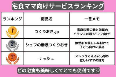そこで今回は、特に宅食でもママ向けで人気が高く、子どもも安心して食べられるサービスを3つ厳選しました!